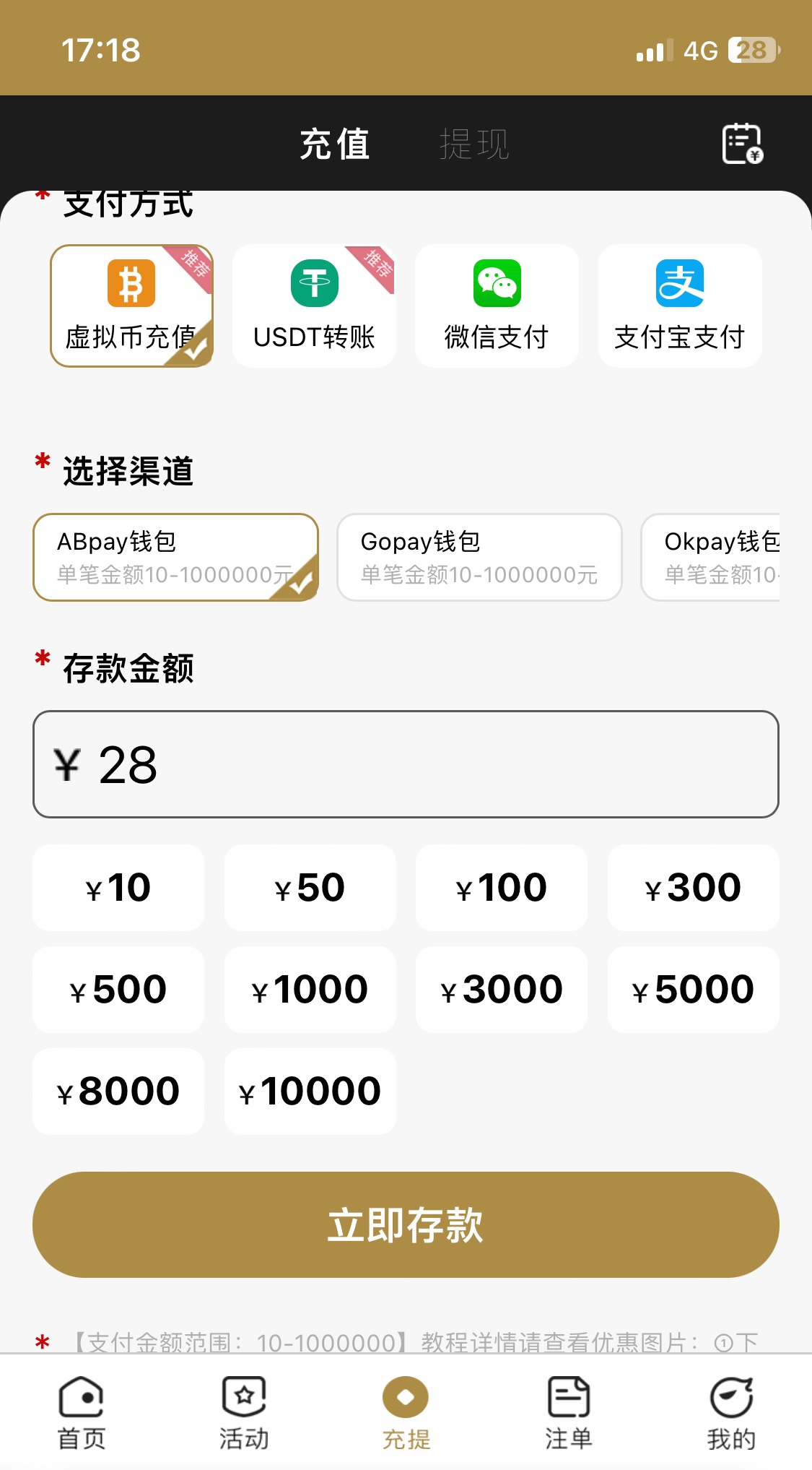 联系AB客服申请28,自己充到平台!