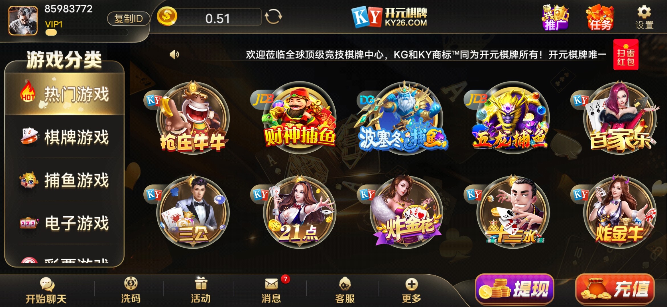 新人注册送260(只能玩棋牌)最低一千提