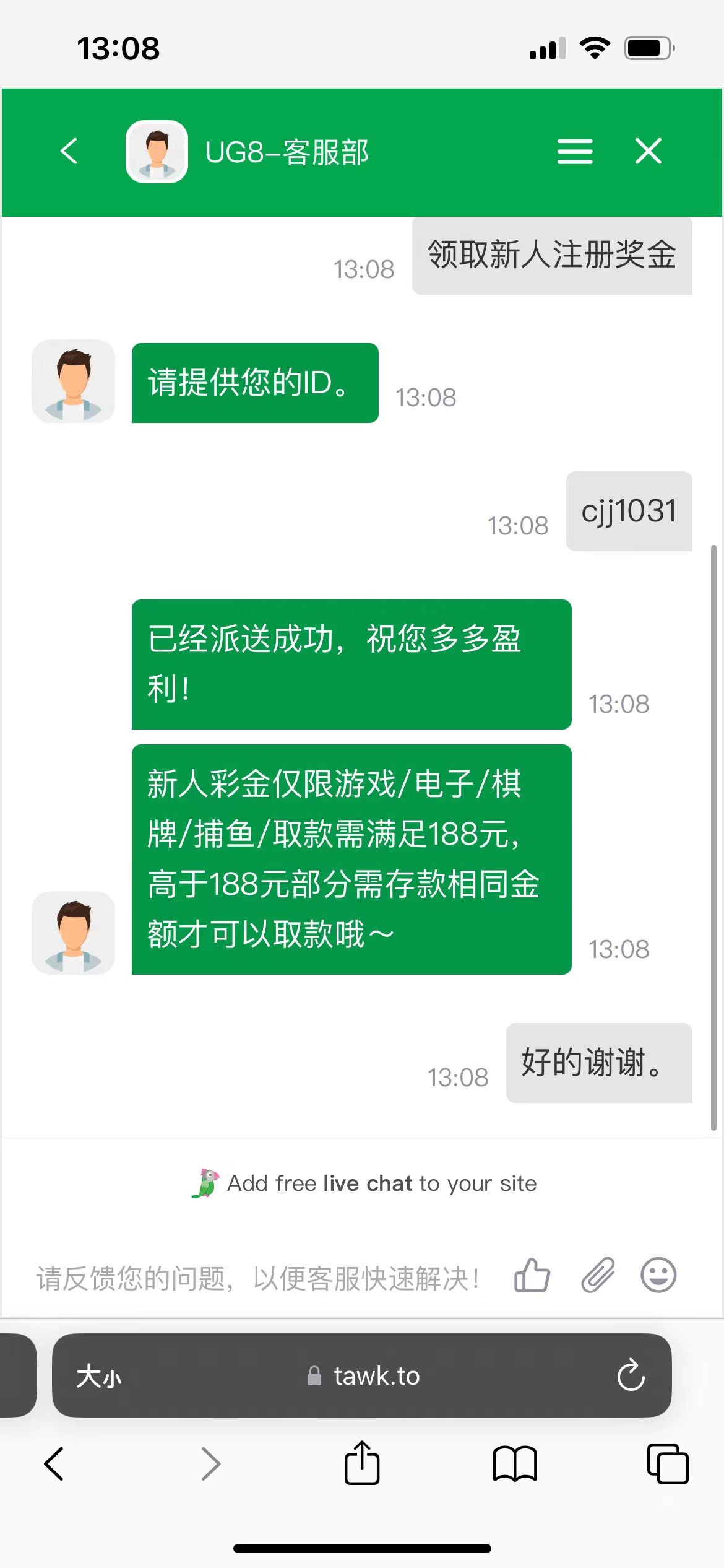 成功再注册账号然后验证手机号领取彩金