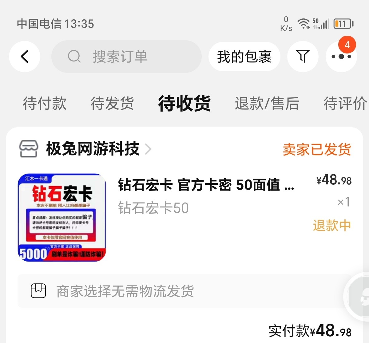 我也买了假卡我退款成功了