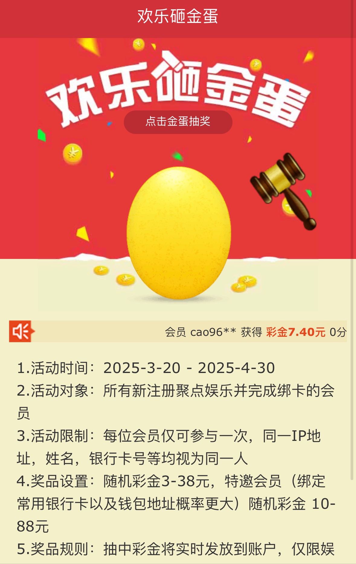 注册绑定银行卡就可以砸金蛋了彩金10倍流水