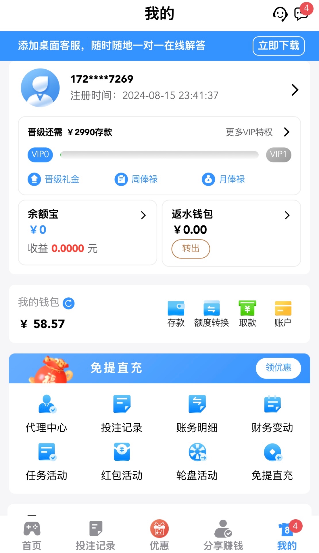 有充值过的兄弟可以登入看看号里有没有彩金