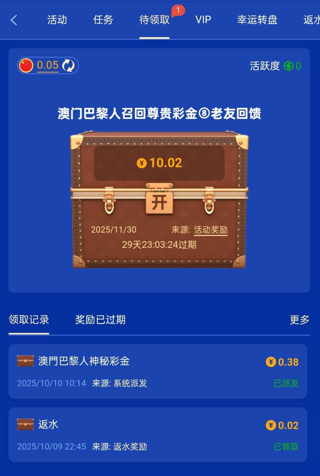 有号的兄弟可以上号去看看有没有彩金领取