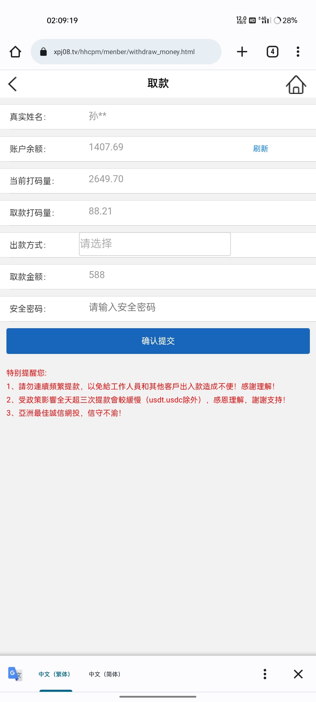 上次送的88 出款888 这次又送了88 又出款588