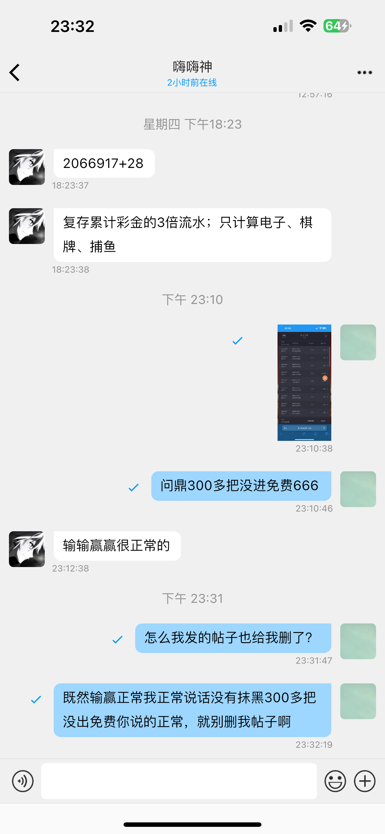 300多把没进免费,给爷整笑了,嘿嘿说输赢正常,但是我发帖子说实话,把我帖子删了