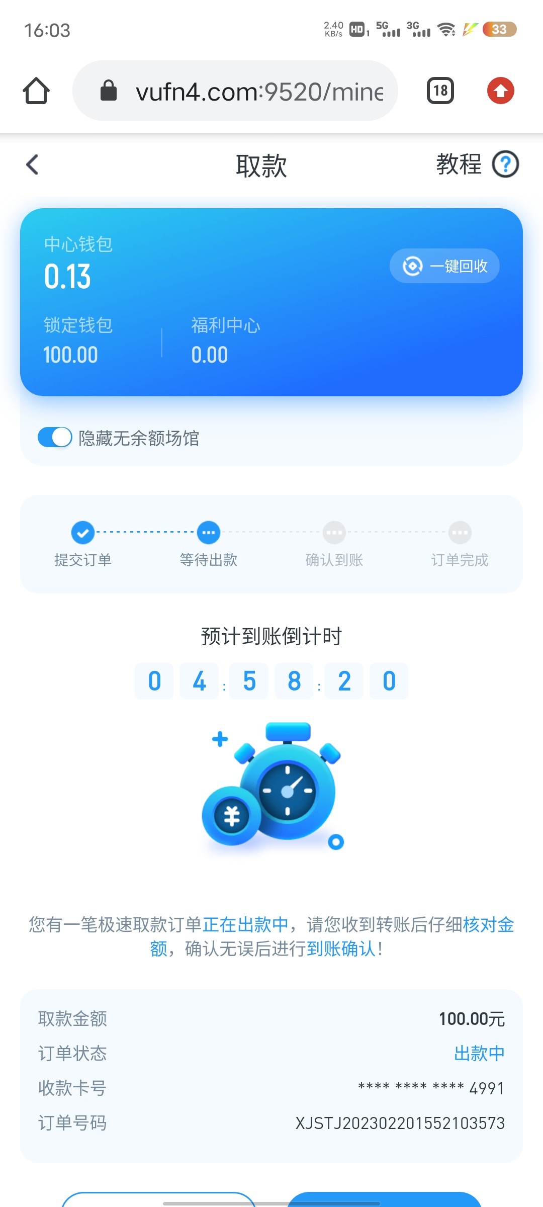 提了100不知道到不到账